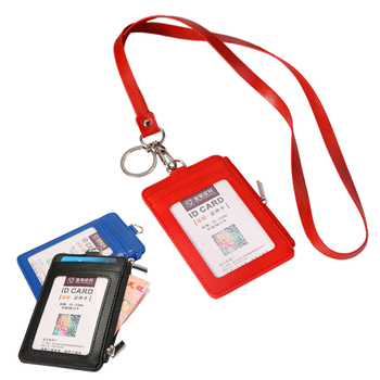 उच्च बनाने की क्रिया रिक्त कस्टम पु चमड़ा कार्यक्षेत्र बिल्ला धारक डोरी के साथ आईडी कार्ड कवर